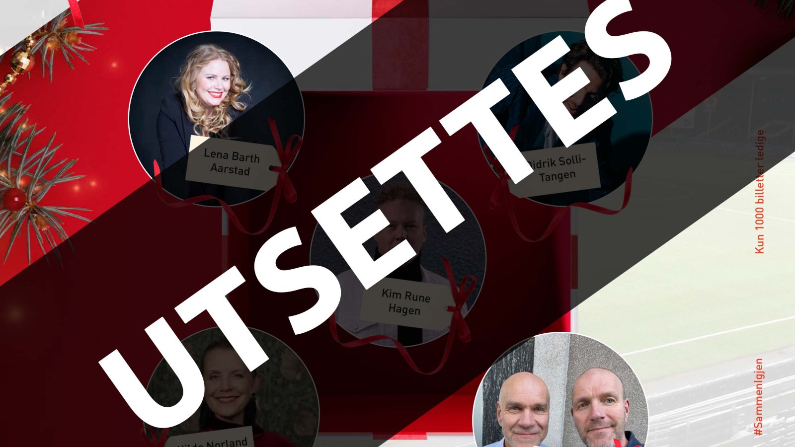 Den store julekonserten blir flyttet til våren og vi vil komme tilbake med eksakt dato og hvilke artister som vil stå på plakaten. Alle gratis billetter som er hentet ut til Den store julekonserten vil bli kansellert og vil ikke gjelde for konserten vi skal ha til våren. Vi vil i god tid informere om når billettene er tilgjengelig til vårkonserten og billettene vil også her være gratis.