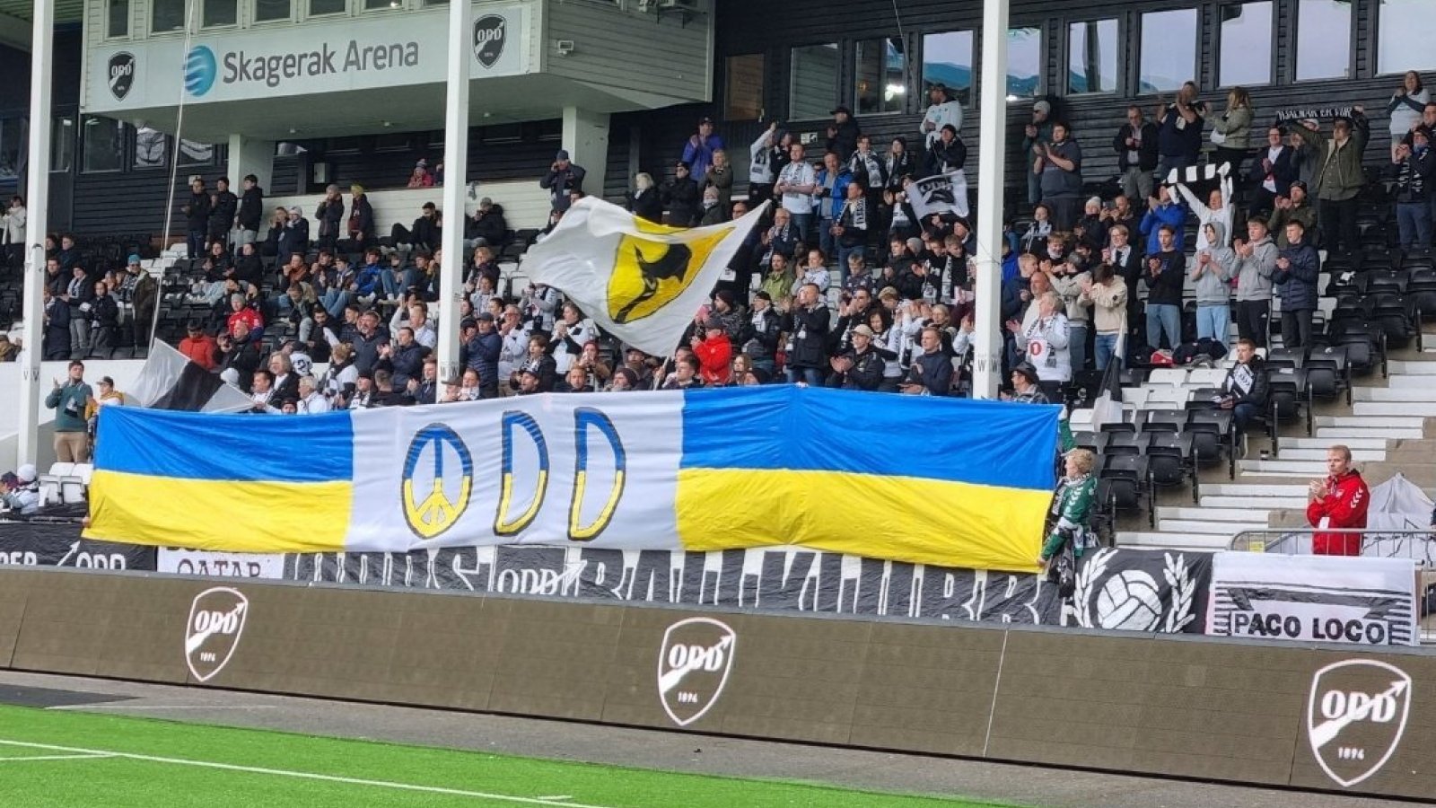 Det ble gåsehudstemning når spillerne entret banen etter fem måneders ventetid siden forrige eliteseriekamp. Med flagg og banner ble det markert støtte til Ukraina fra supporterne på Nordre Falkum. Når kampen startet, var det full gass på tribunen bak målet. Lyden hørtes svært godt fra de frammøtte, som stemte i under hele kampen med heiarop og sang, og løftet Odd frem til seier.