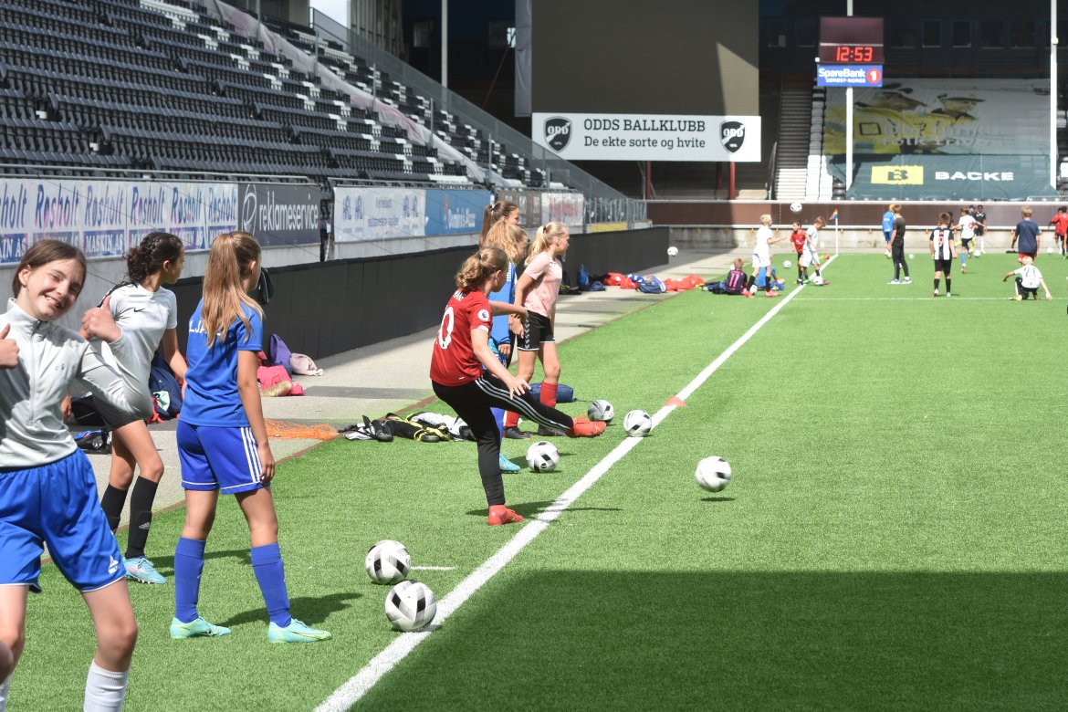 "Jeg ønsker også å skryte av instruktørene våre. De legger ned mange timer og gjør en fantastisk jobb. Ekstra gøy for de påmeldte jentene var det at spillere fra Odd Kvinner bidro som instruktører hver dag", avslutter Løkken.