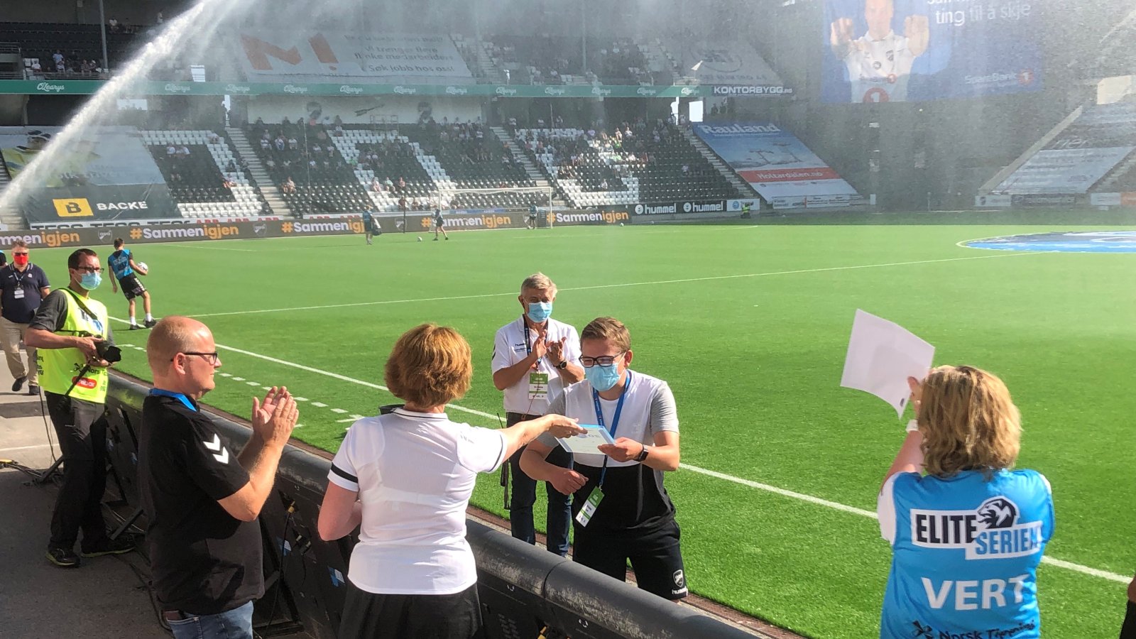 Før kampen mot Rosenborg 4. juli fikk vi beviset for at vi ble kåret til årets TINE Fotballskole i NFF Telemark.