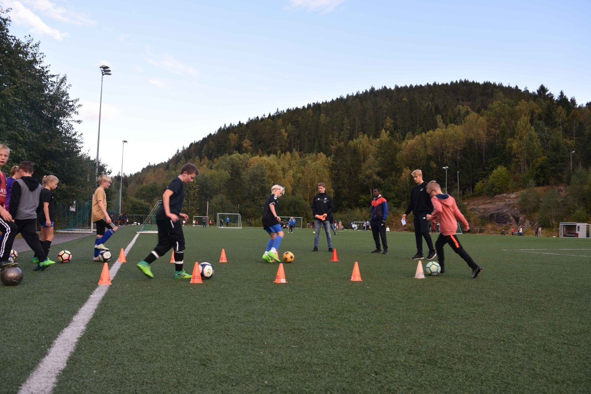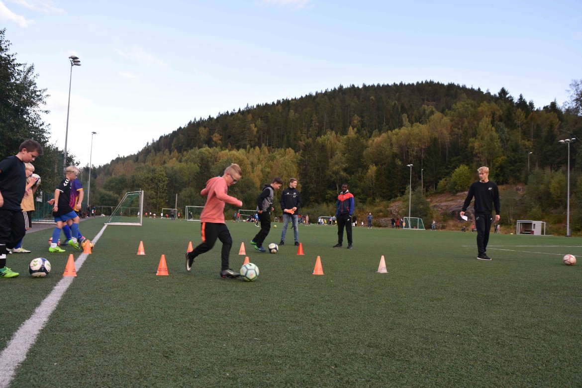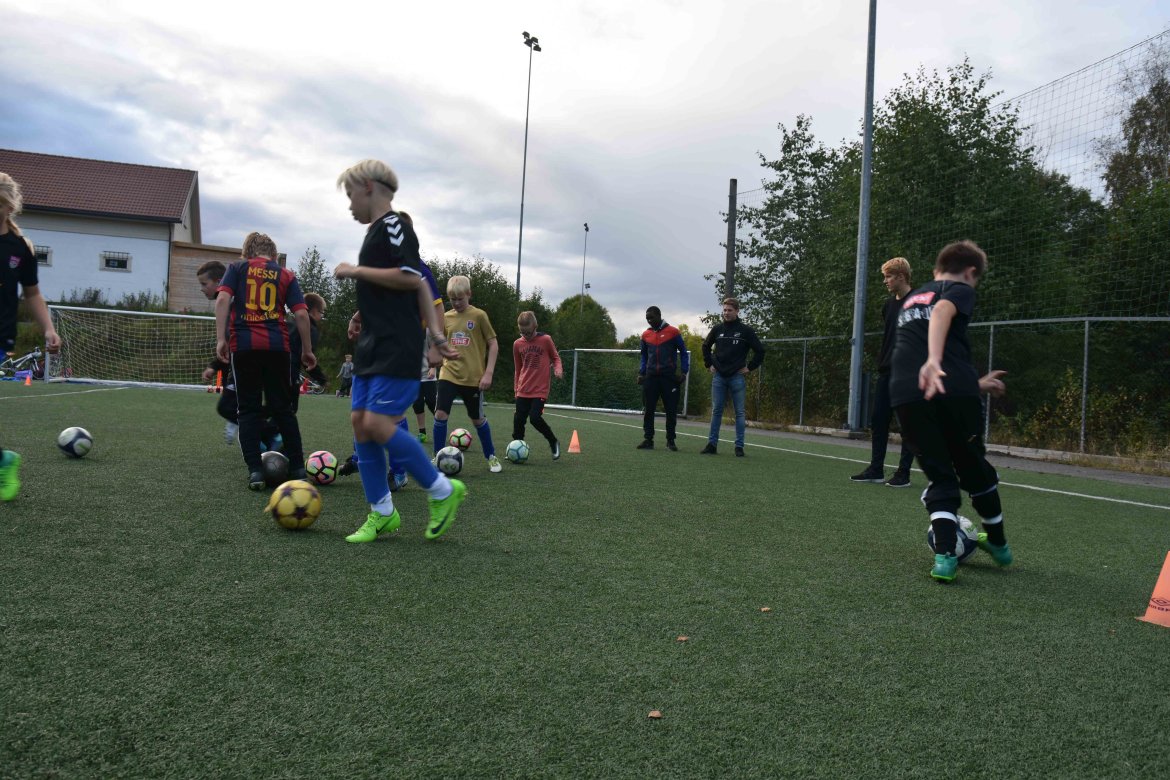 Åfoss G11 trener to ganger i uka, men dette ble en noe spesiell tirsdag for de håpefulle barna. Laget består av både gutter og jenter, og de fikk testet seg på flere tekniske øvelser av Odd-spillerne.