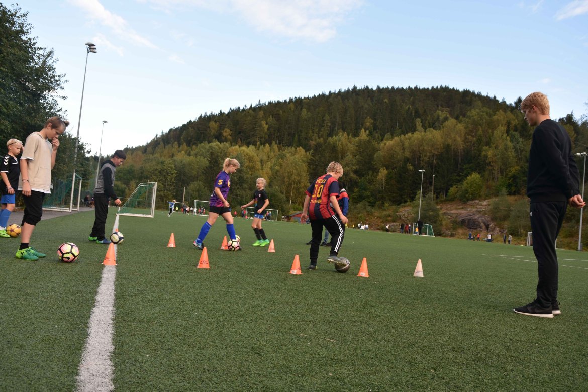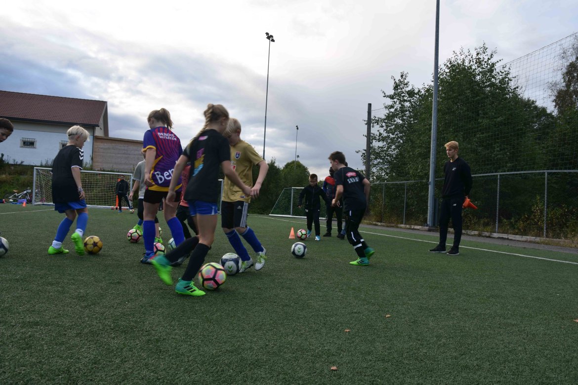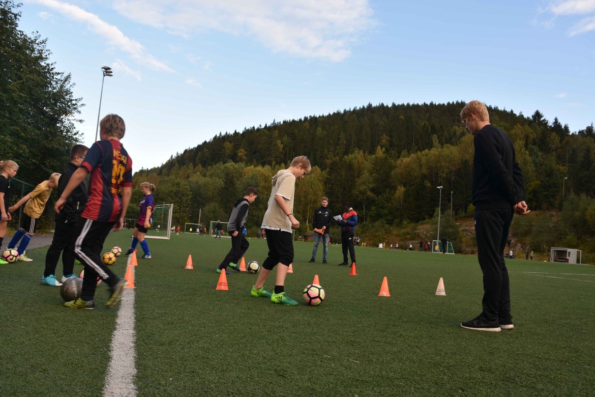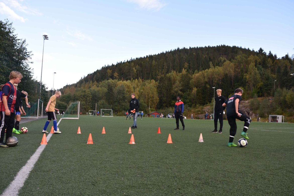 Åfoss G11 trener to ganger i uka, men dette ble en noe spesiell tirsdag for de håpefulle barna. Laget består av både gutter og jenter, og de fikk testet seg på flere tekniske øvelser av Odd-spillerne.