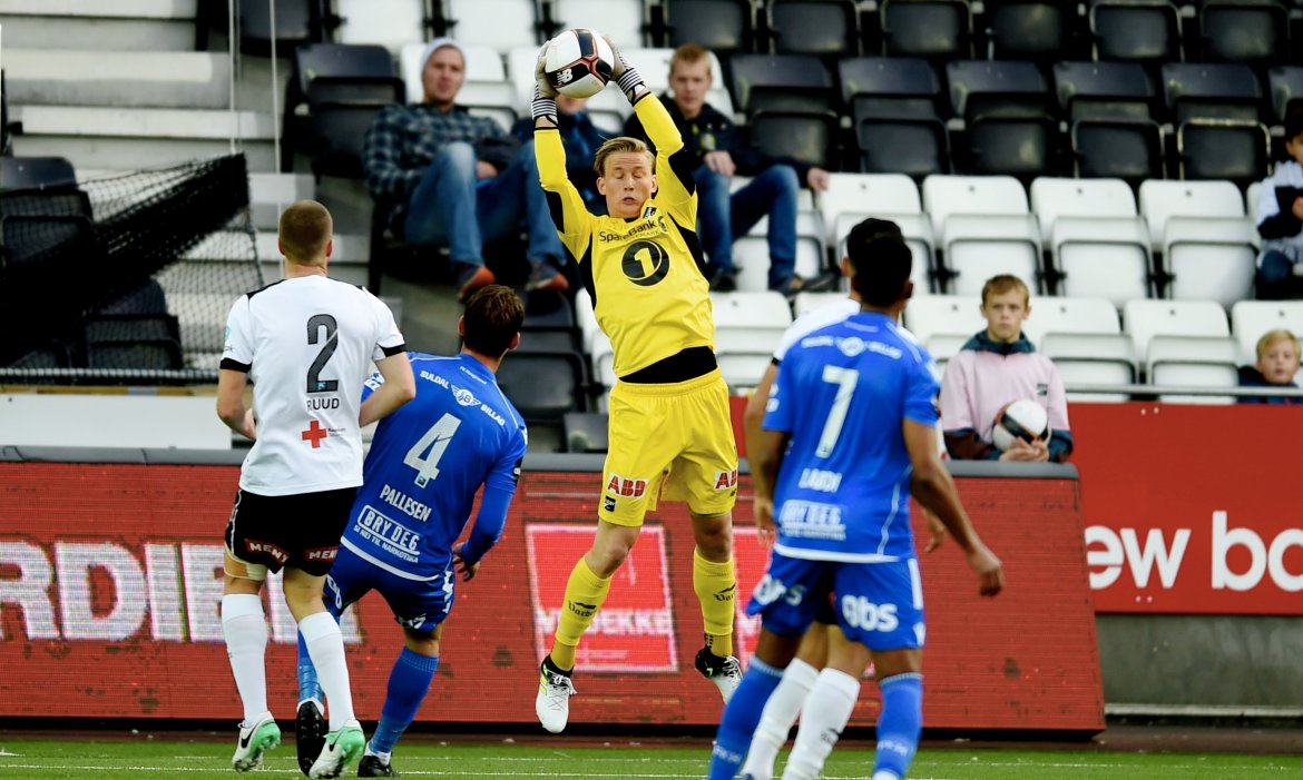 Jone som har vært sikkerheten selv på de tidligere straffene Odd har fått tildelt er ikke like kald i dag. Bråtveit slenger seg riktig og redder straffen. Der flørtet spikeren med kista.