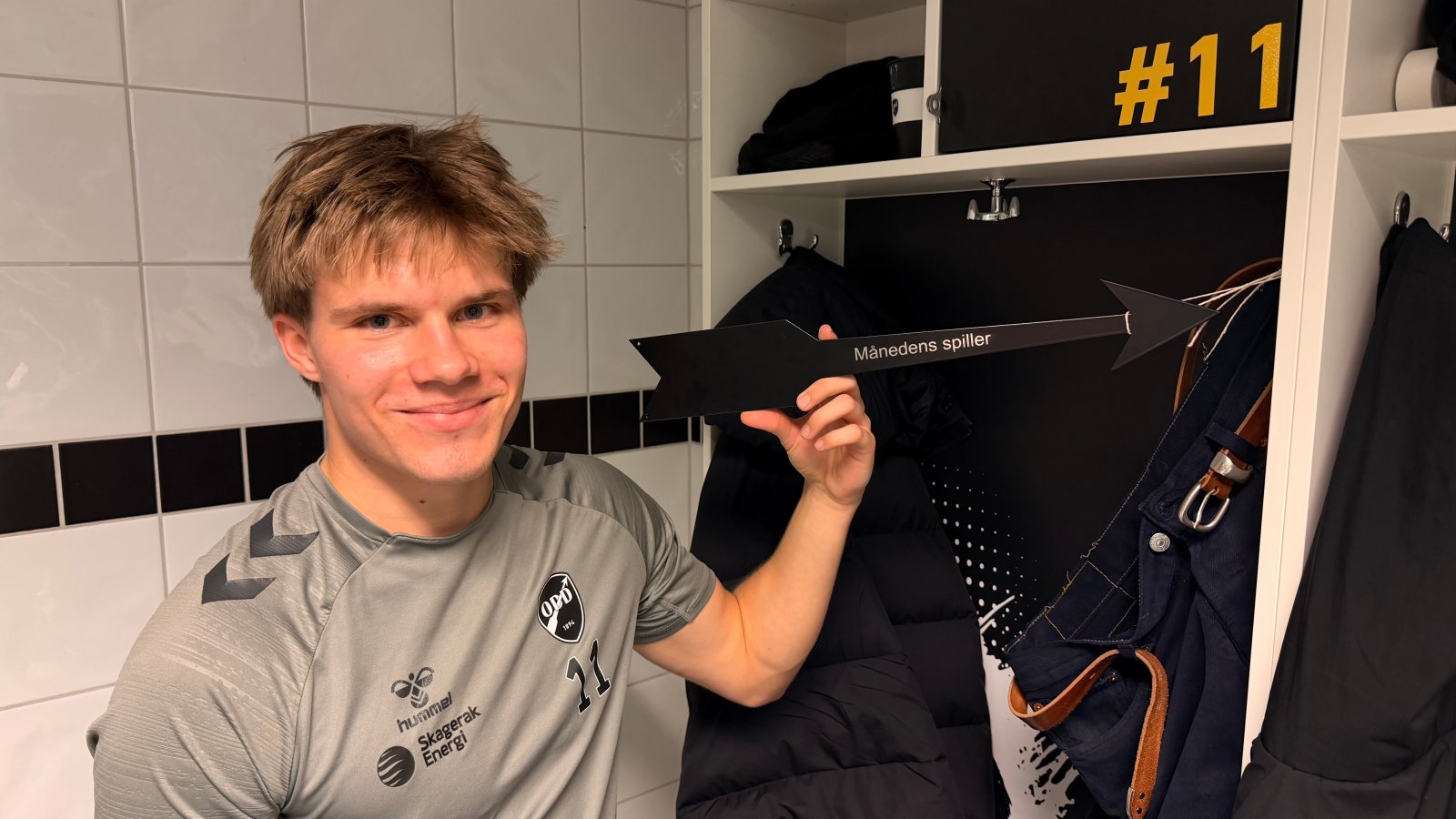 MVP-prisen henges opp på spillerens faste plass i garderoben – markert med en Odd-pil – og blir en synlig påminnelse om hvem som har vært best i treningshverdagen.