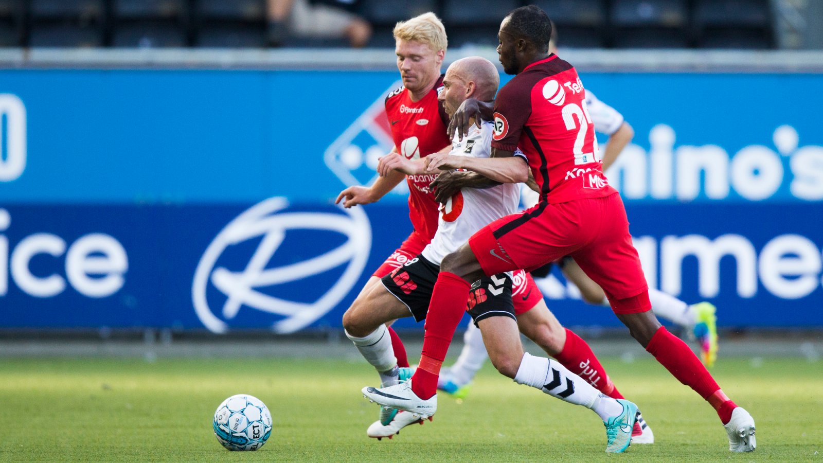 Jone Samuelsen og Thomas Grøgaard kombinerte fint på kanten like før lagene hadde spilt et kvarter. Samarbeidet resulterte i en pasning til Martin Broberg som hadde løpt seg fri inne i femmeteren. Svensken satte ballen sikkert i mål, men Grøgaard ble avblåst for en hårfin offside i det han slo innlegget.