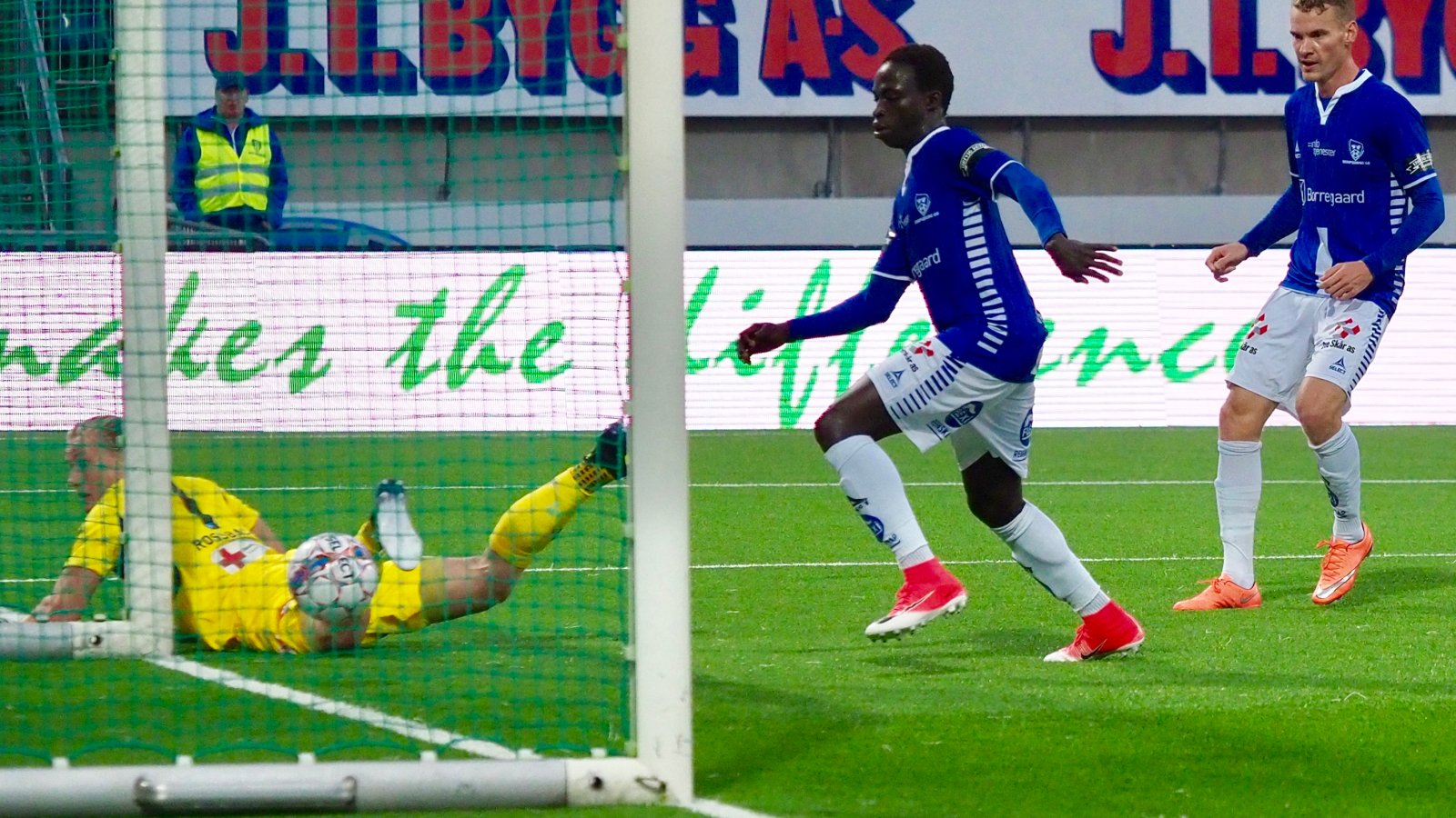 39 minutter er spilt og Matti Lund Nielsen skyter fra distanse. Skuddet treffer stolpen, går i ryggen til Rossbach, og ender i mål. Svært uheldig for Rossbach, som ellers har stått solid.