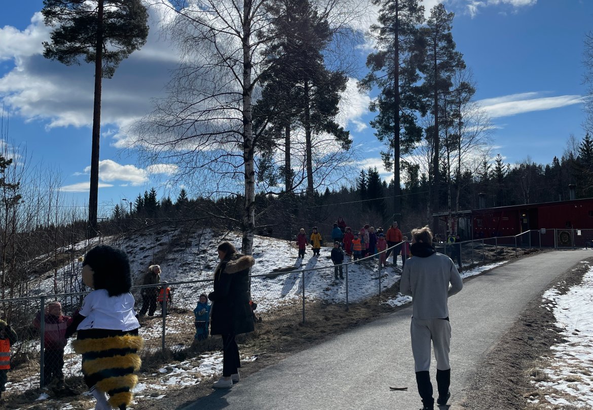 For å avslutte besøket vårt i Siljan gikk turen ned mot Skogloppa barnehagen der alle barna fikk lov til å hilse på Brodd.
