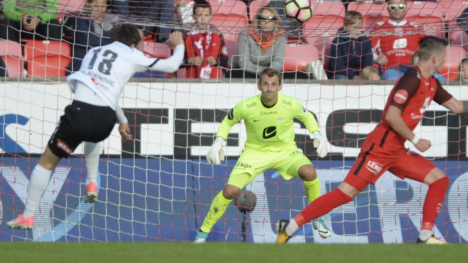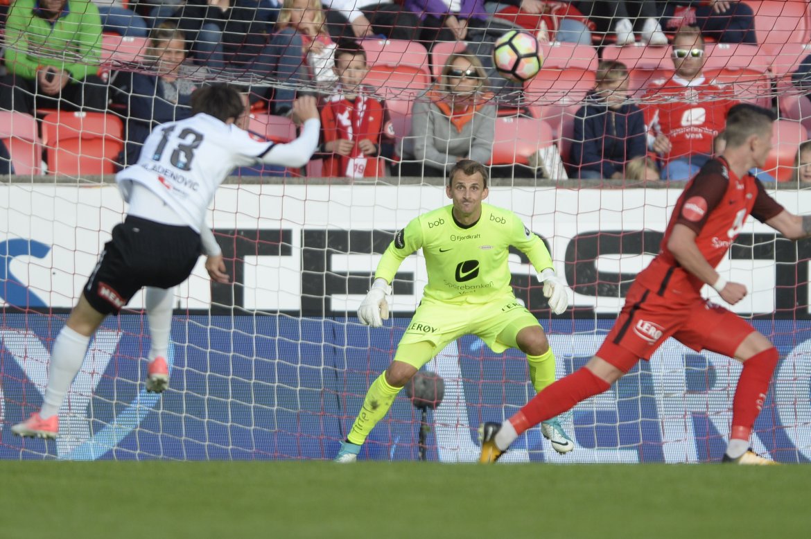 Selv om det var svært sjansefattig klarte Brann å score i 1.omgangen. Fredrik Haugen legger inn, Occean header ut. Klareringen går ikke lenger enn til Rolantsson, som klemmer til. Ballen går forbi alt og alle, og inn i mål.