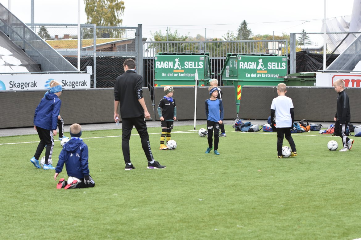 Som vanlig arrangerte vi fotballskole i høstferien. I år som i fjor ble den gjennomført i samarbeid med Rema 1000. 125 fotballglade barn møtte opp på tross av noe dårlig vær til tre minnerike dager på Skagerak Arena!