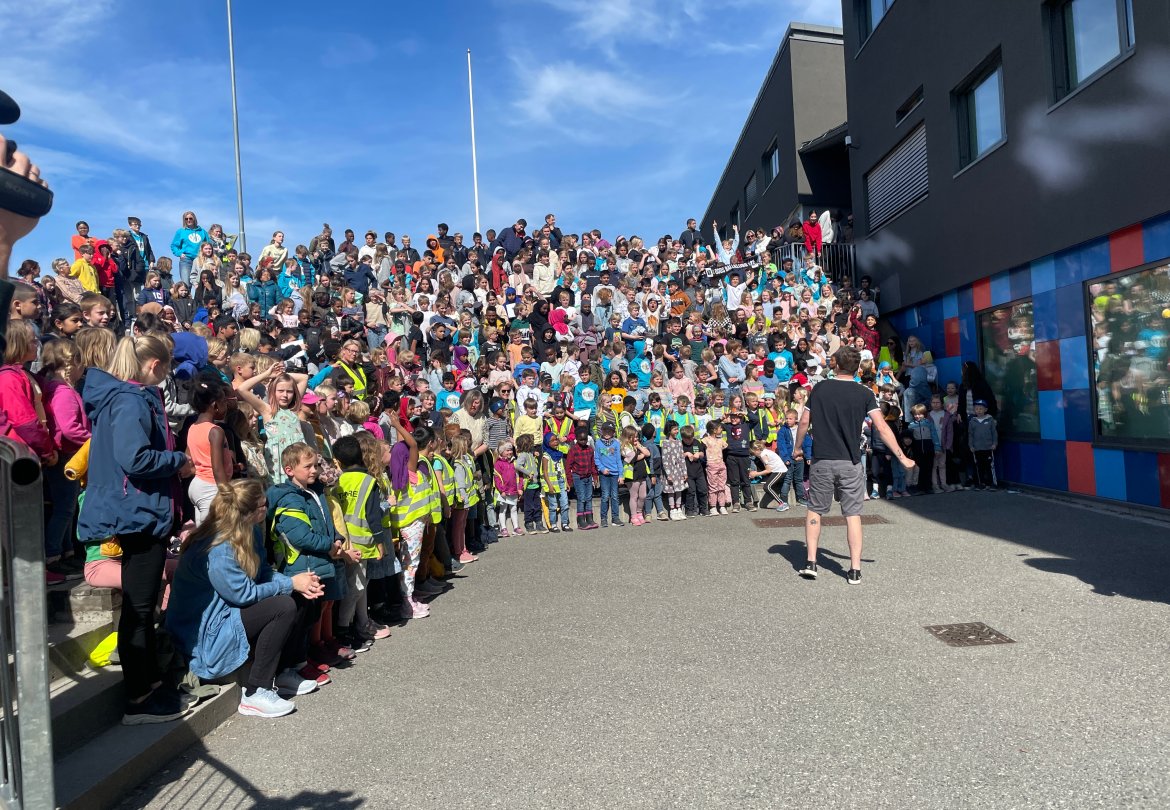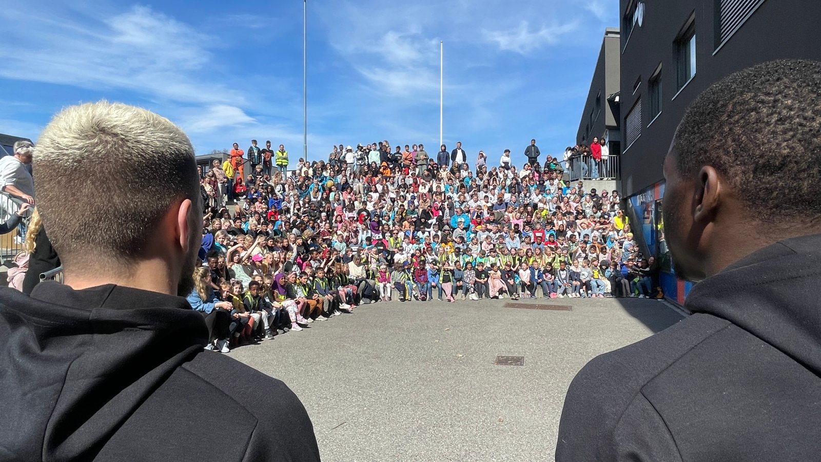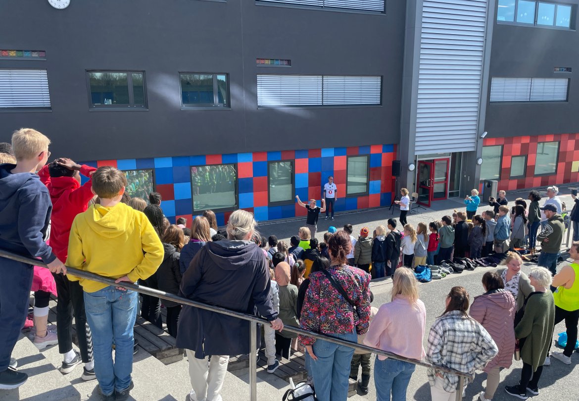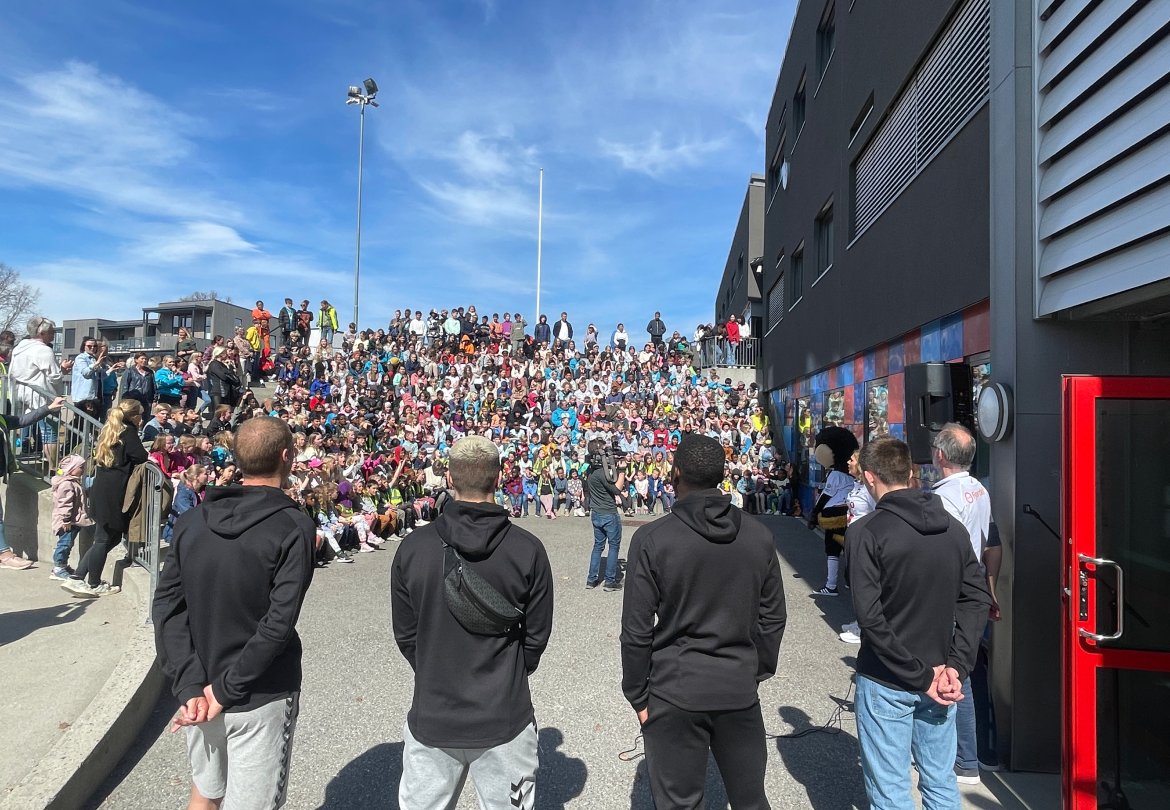 Vi startet besøket med at Vetle lærte elevene noen rop som brukes på kamp før Brodd kom frem for å vise en dans. Deretter kom spillerne og de måtte svare på noen spørsmål blant annet om tips til hvordan man blir god til å spille fotball og hva deres største fotballøyeblikk har vært.