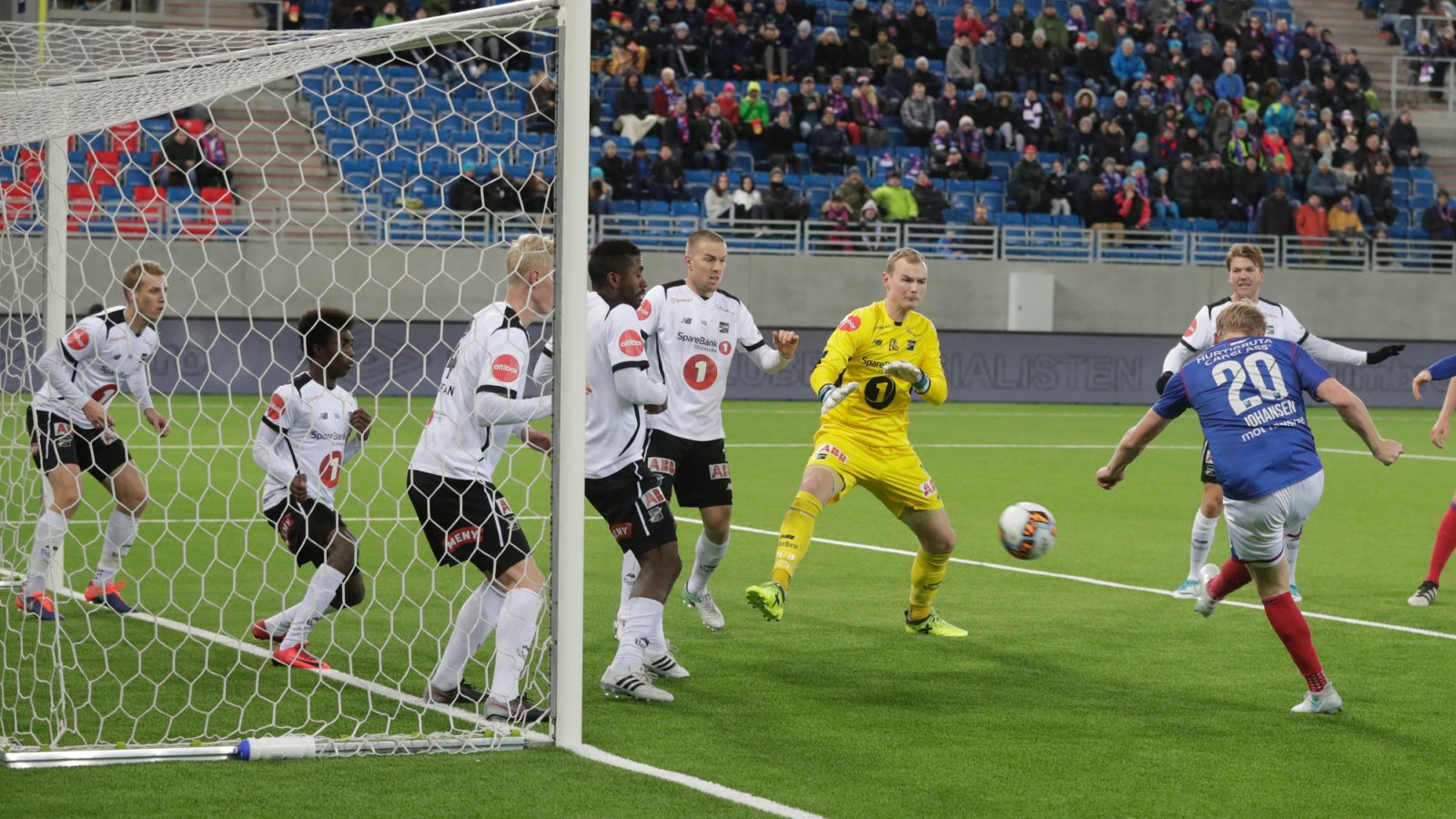 Det tok bare knappe 9 minutter før Vålerenga fikk hull på byllen. Ejuke krangler med seg ballen og gjør som han vil i 16-meteren til Odd. Avslutningen går i stolperota og inn. Blytung start for Fagermos menn.