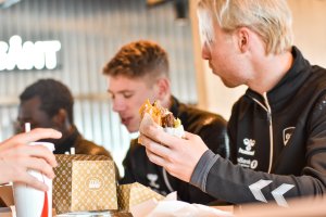 Flere av Odd-gutta tok fredagskosen hos Max Hamburger på Nenset for å teste ut den nye burgeren.