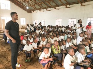 Det er ikke bare fotball i tankene til Mushaga Bakenga om dagen, han driver også en skole i Kongo der han gir mennesker mulighet til å få seg en utdannelse. I dag sto Bakenga på Skagerak Arena og pakket utstyr som han sender ned til skolen.
